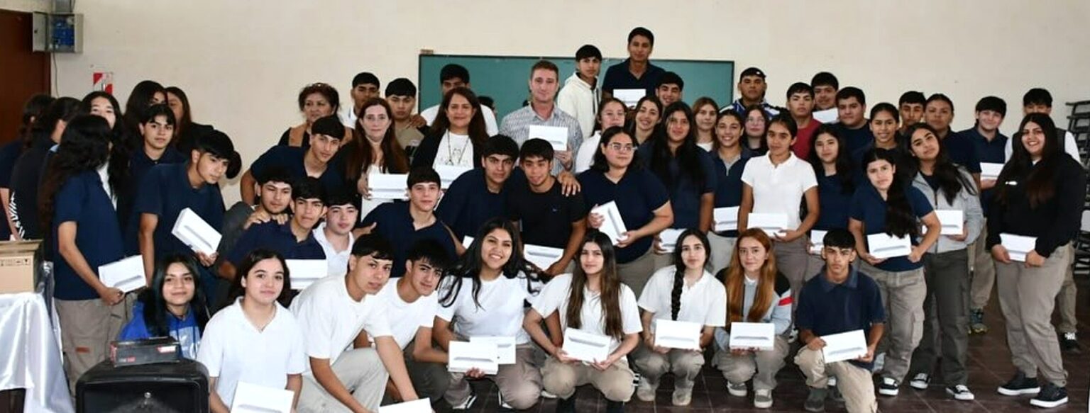 En un acto cargado de entusiasmo, los alumnos del último año del Colegio Agrotécnico de la ciudad de Quimilí recibieron sus dispositivos tecnológicos en el marco del programa provincial «Metas Digitales». La entrega estuvo encabezada por el intendente municipal, Diego Ponti, quien asistió en representación del Gobierno de la Provincia para dar continuidad a esta política de inclusión digital que alcanza a jóvenes de todo el territorio santiagueño.