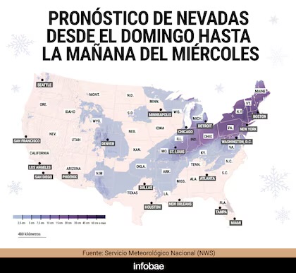 El fenómeno extremo afecta desde las Montañas Rocosas hasta la costa atlántica. Catorce estados se encuentran en emergencia mientras se registran acumulaciones de nieve récord y temperaturas de hasta -29 °C.